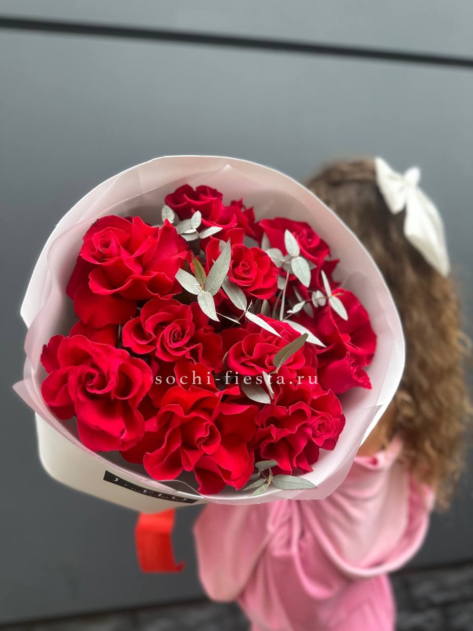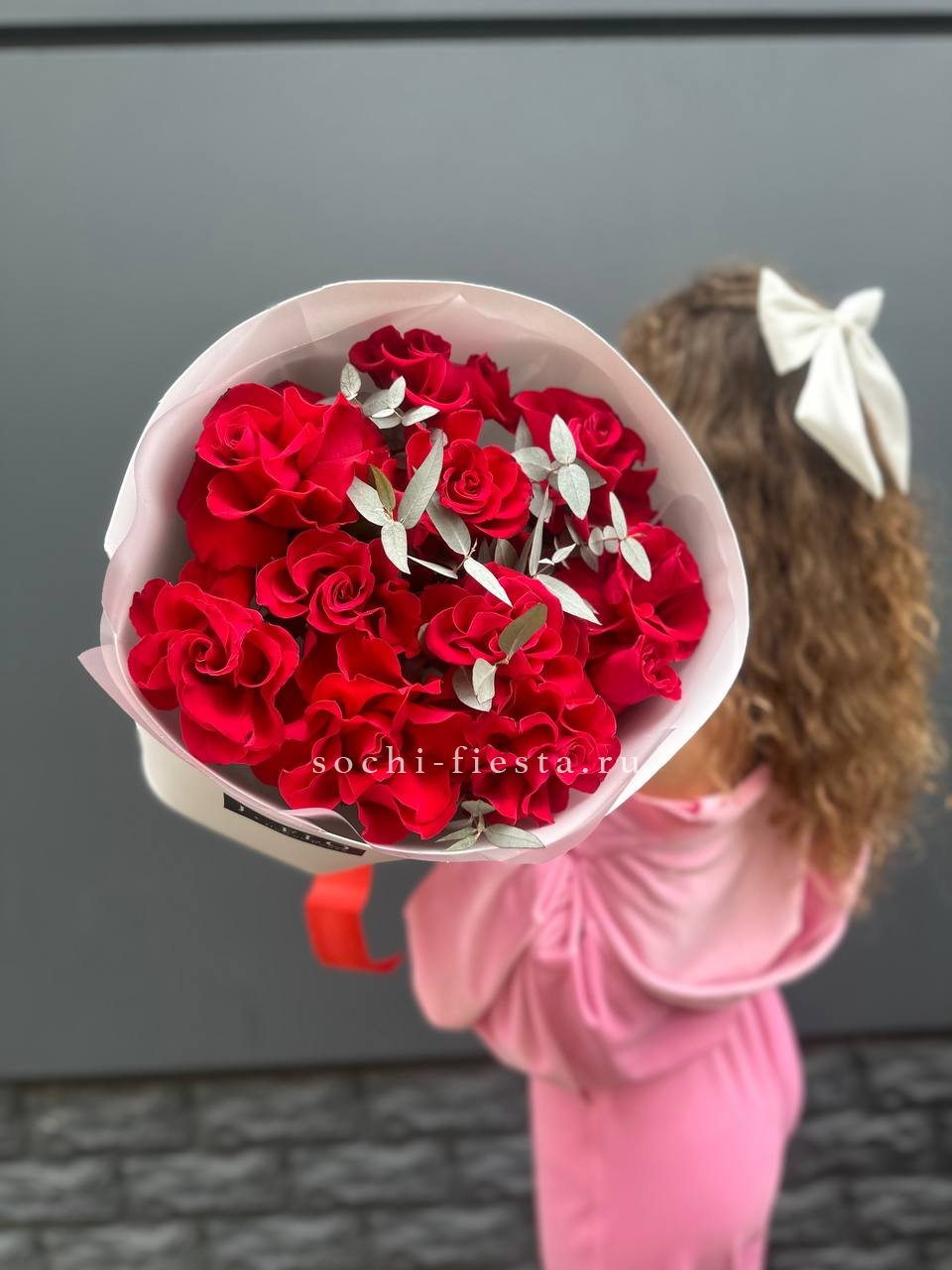 15 роз сорта джумилия, лента, дизайнерская упаковка.