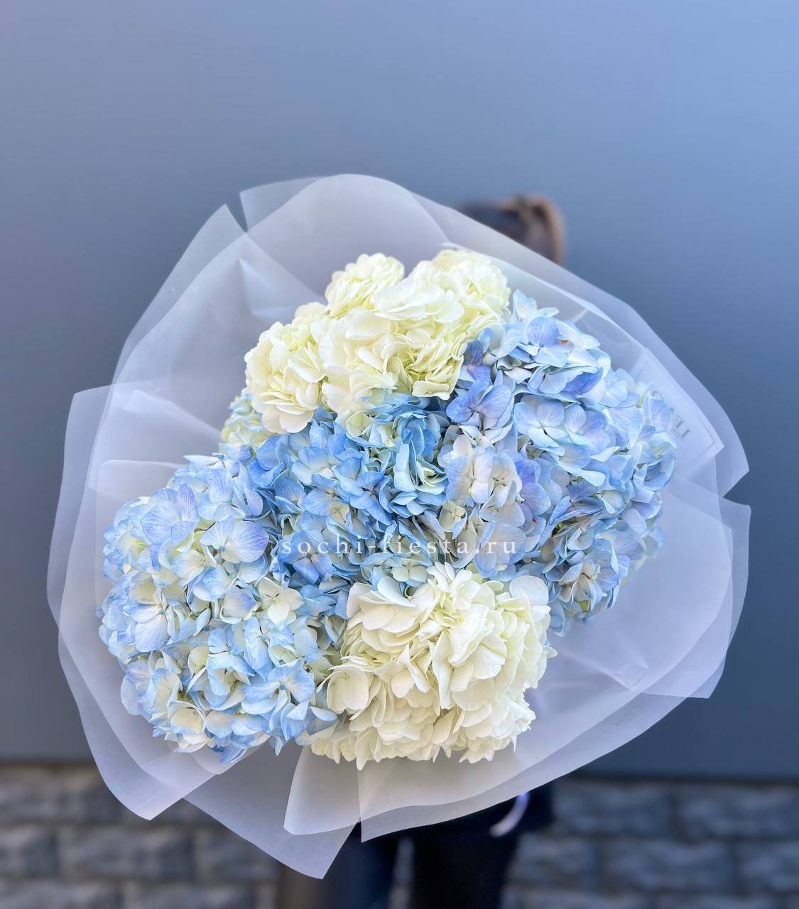 гортензия - 5 шт., лента, дизайнерская упаковка.