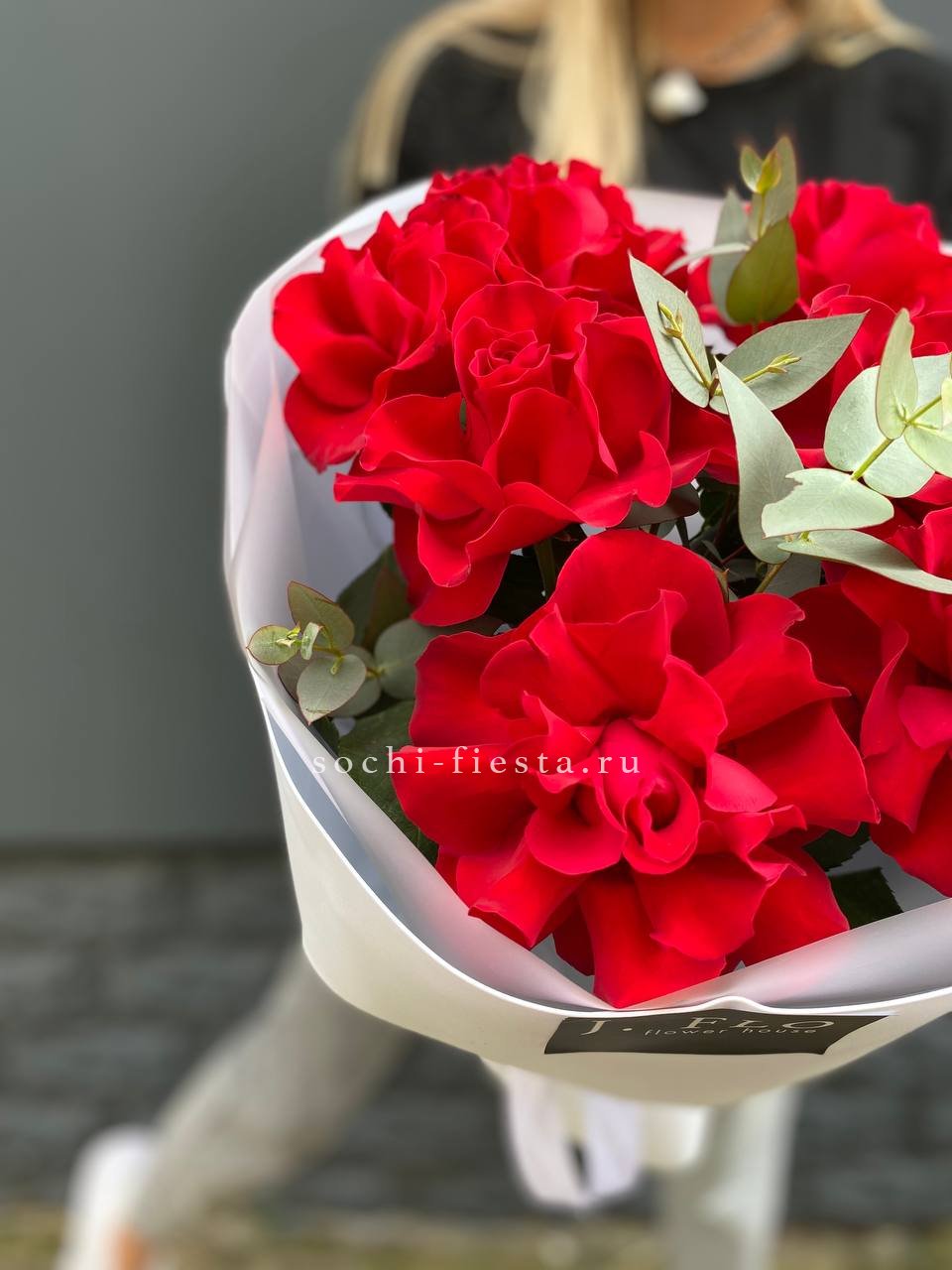 розы, гортензия, эустома, эвкалипт, дизайнерская упаковка.