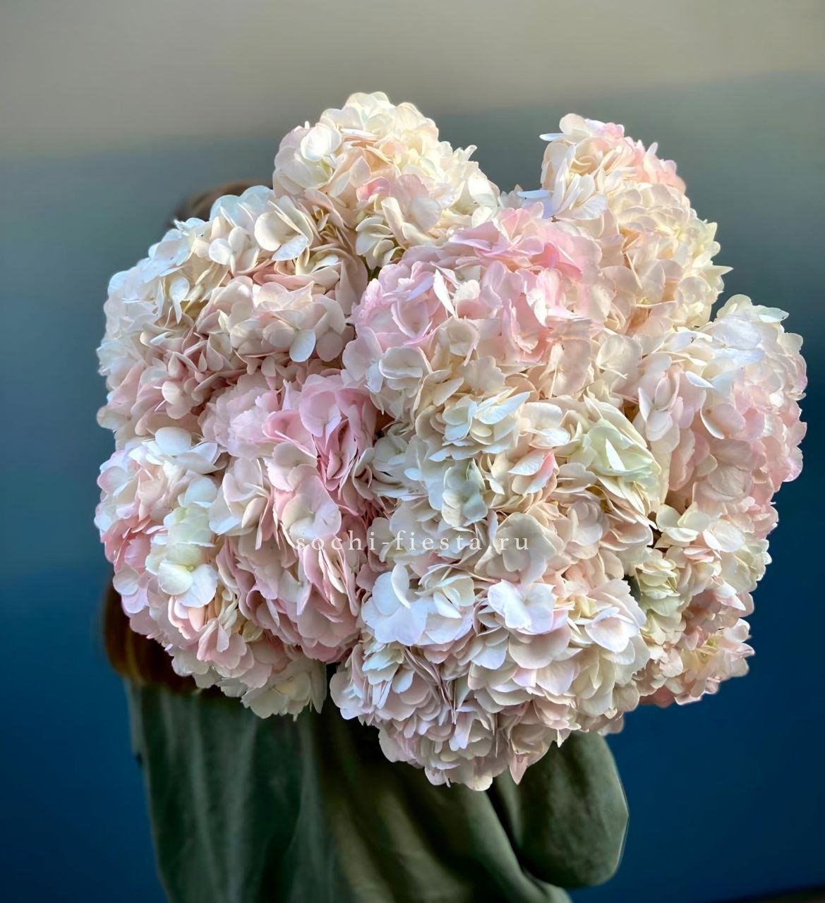 гортензия розовая 9шт., лента, дизайнерская упаковка. Цвет гортензий может незначительно отличаться.
