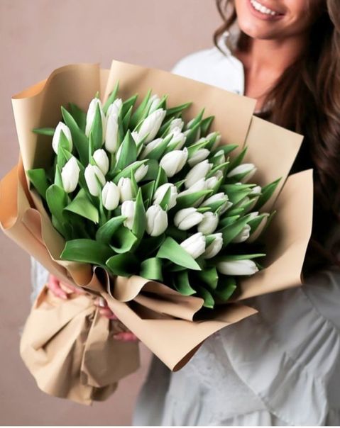 Пятнадцать белоснежных бутонов в лаконичной упаковке держат форму и сохраняют свежесть надолго. Тюльпаны раскрываются постепенно, их лепестки плотные и аккуратные. Композиция удобна для размещения в любой вазе.