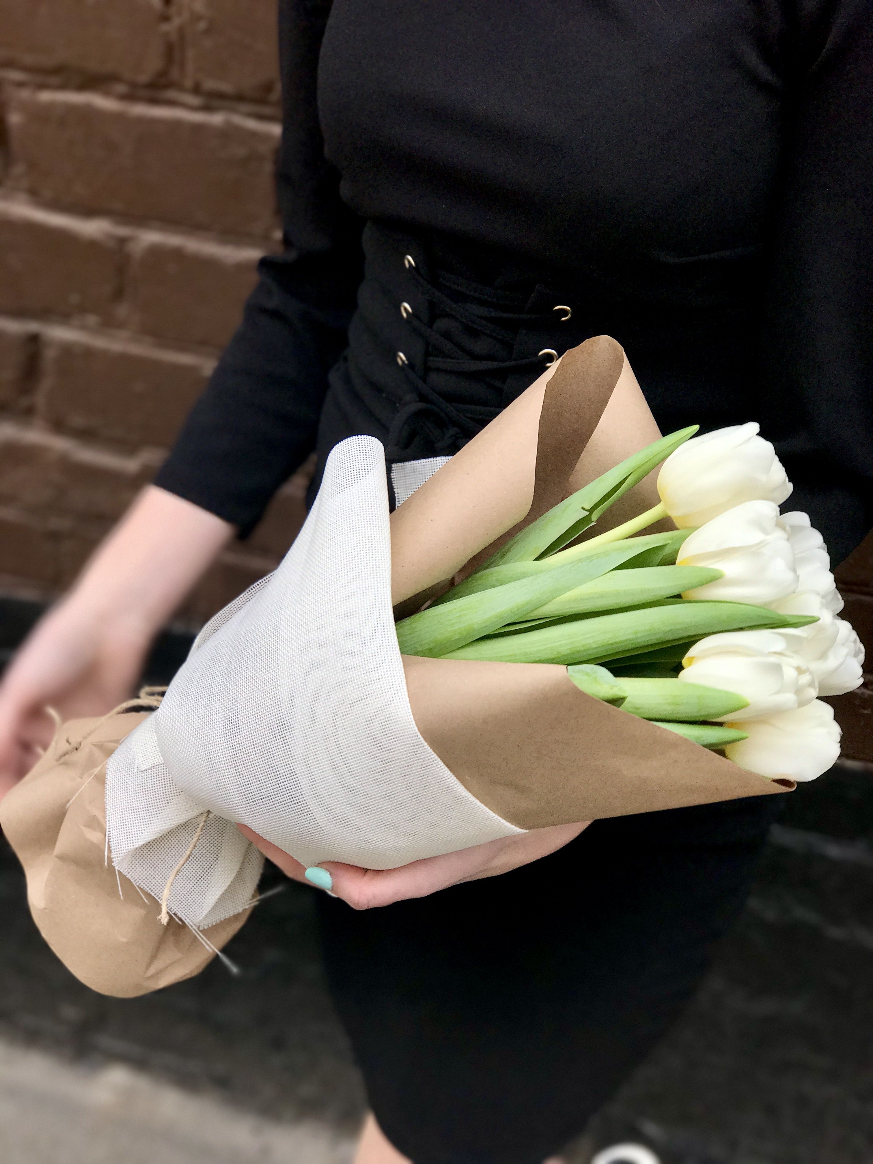 Семь белых тюльпанов в крафтовой обёртке — компактное решение для небольшого пространства или камерного жеста. Букет сохраняет свежесть и аккуратную форму.