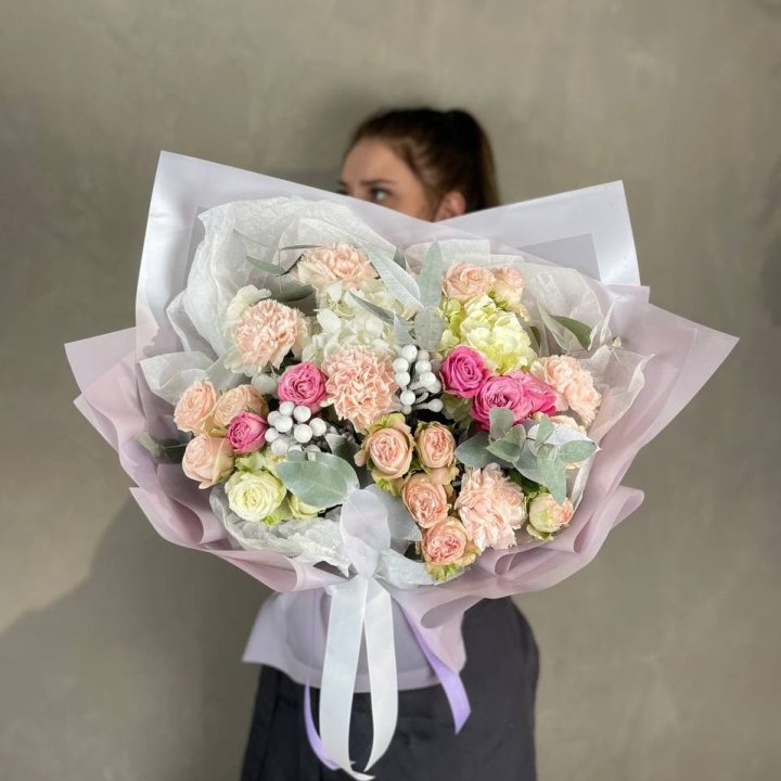 - Редкий состав — David Austin, ранункулюс, анемоны, сезонные пионы.