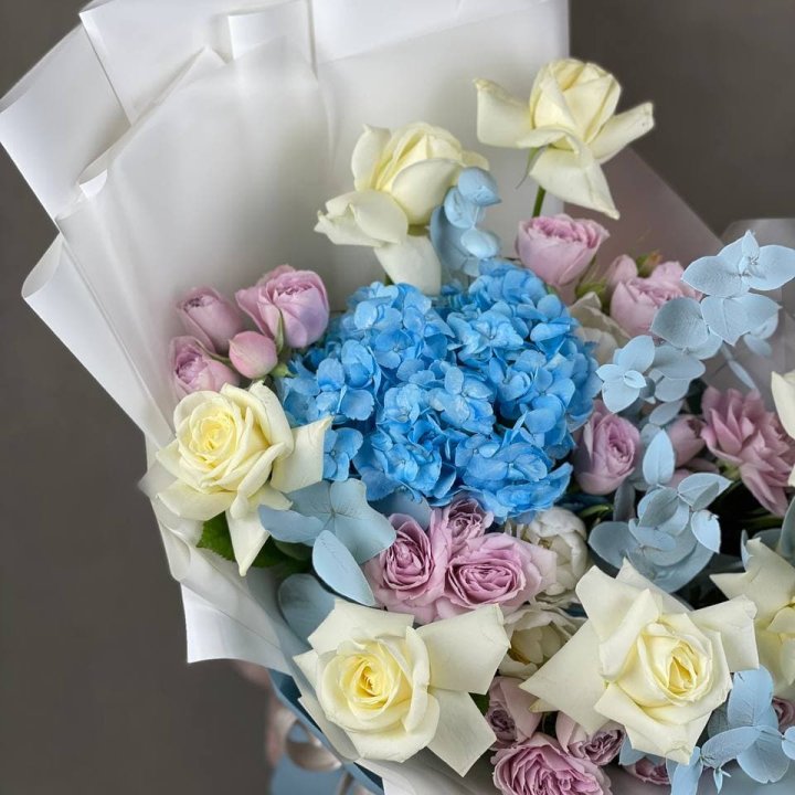 - Редкий состав — David Austin, ранункулюс, анемоны, сезонные пионы.