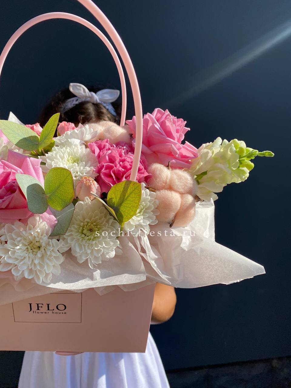 хризантемы, розы, верба, хлопок, эвкалипт, сумочка.