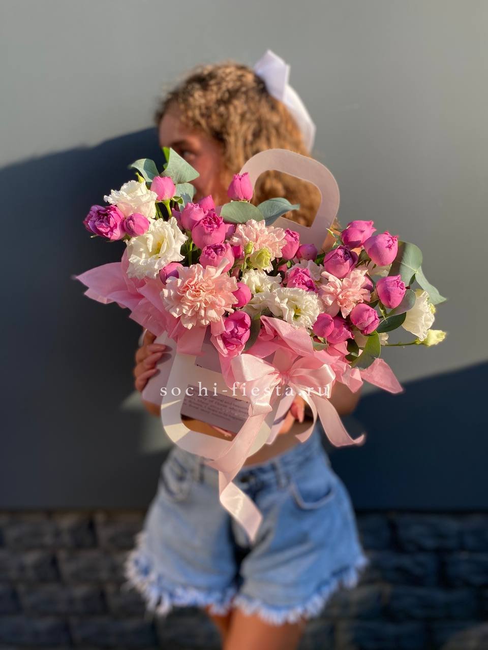Для заказа товара "Сумочка с кустовой розой и диантусами" с доставкой в Йошкар-Оле нажмите в корзину