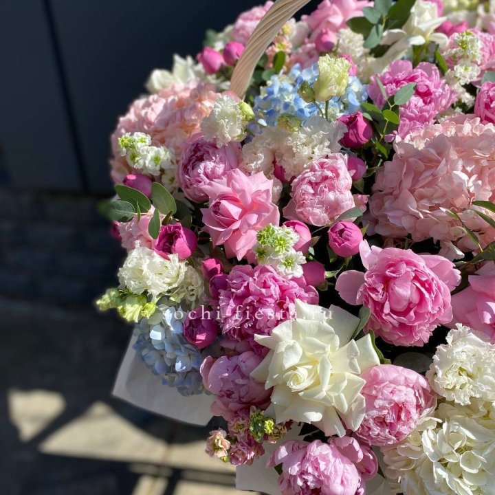 Каждый сезон приносит в Йошкар-Оле свой ассортимент корзин. Весной флорист создаёт корзины с тюльпанами и нарциссами — лёгкие, нежные, полные ощущения обновления. В мае-июне приходят пионы — Sarah Bernhardt, Bowl of Cream, Red Charm — главный флористический праздник. Осенью — хризантема в тёплых гаммах с декоративными ягодами и ветвями. Зимой — хвойные аранжировки с амариллисом для праздничной атмосферы.
