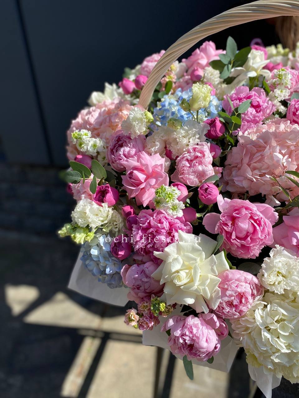 Корзина вмещает двести один бутон, образующих пышное цветочное полотно. Классическая форма подачи позволяет разместить композицию в любом пространстве без необходимости искать вазу. Впечатляющий объем для важных событий.