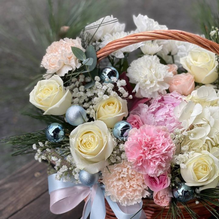 Каждый сезон приносит в Йошкар-Оле свой ассортимент корзин. Весной флорист создаёт корзины с тюльпанами и нарциссами — лёгкие, нежные, полные ощущения обновления. В мае-июне приходят пионы — Sarah Bernhardt, Bowl of Cream, Red Charm — главный флористический праздник. Осенью — хризантема в тёплых гаммах с декоративными ягодами и ветвями. Зимой — хвойные аранжировки с амариллисом для праздничной атмосферы.
