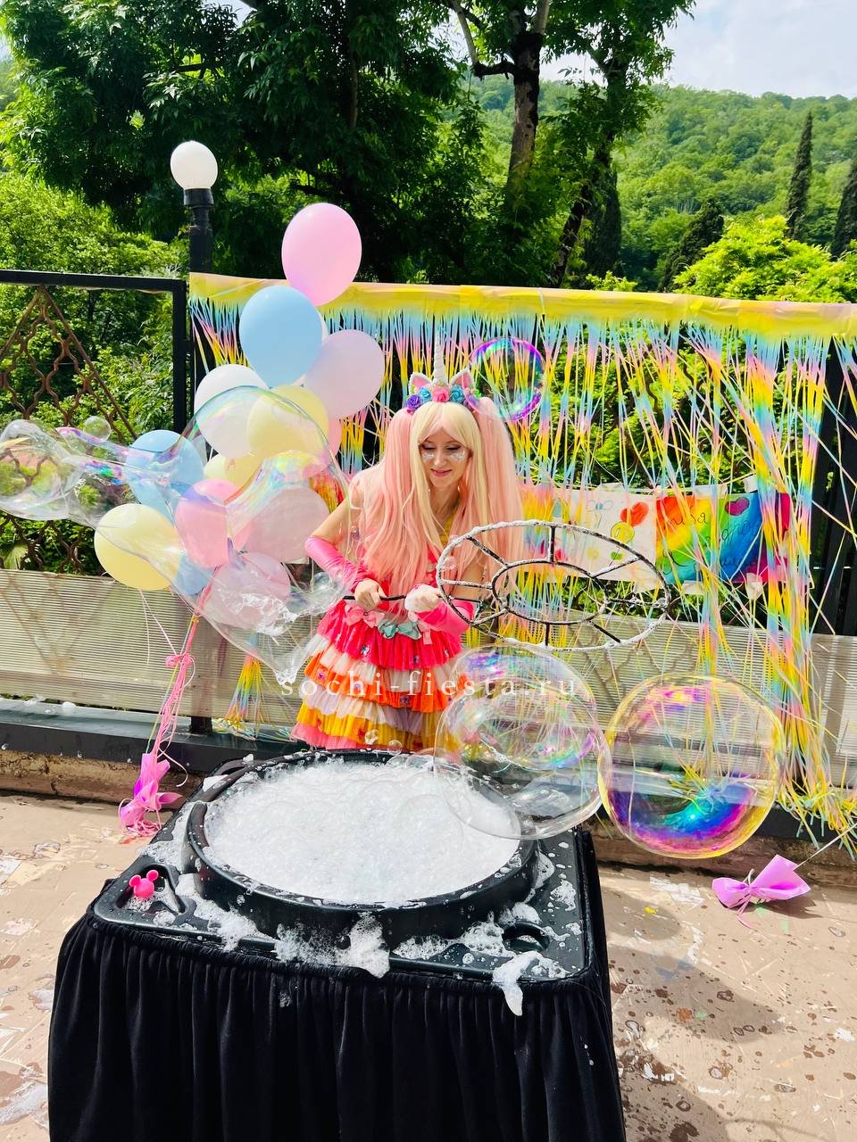 Шоу мыльных пузырей — яркое и захватывающее представление, в котором мастер создает огромные, разноцветные и необычные мыльные пузыри разного размера. В программе используются специальные техники и инструменты для формирования фантастических фигур, пузырей-гигантов и эффектных трюков. Это зрелищное шоу радует зрителей своей красотой, магией и атмосферой веселья, особенно популярное среди детей и семей.
