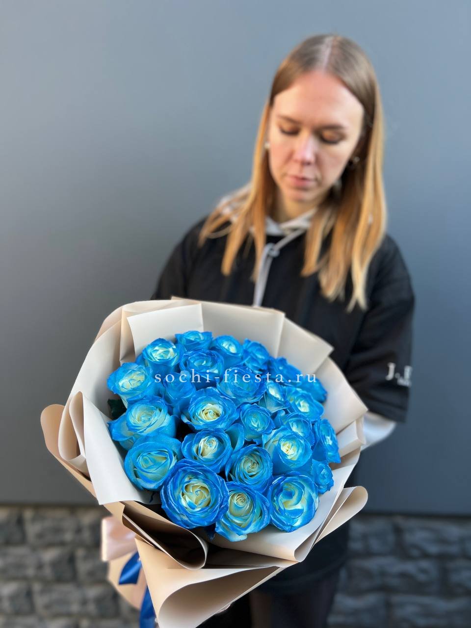 цена букета указана за 15 роз Состав букета на фотографии: синие розы - 25 шт., лента, комбинированная упаковка.