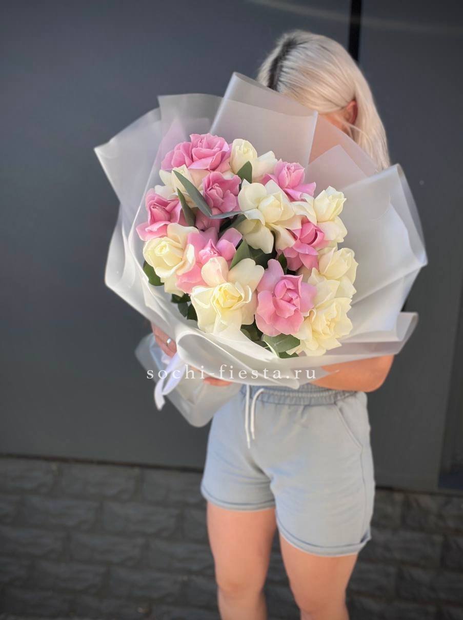 Для заказа товара "15 бело-розовых роз" с доставкой в Йошкар-Оле нажмите в корзину