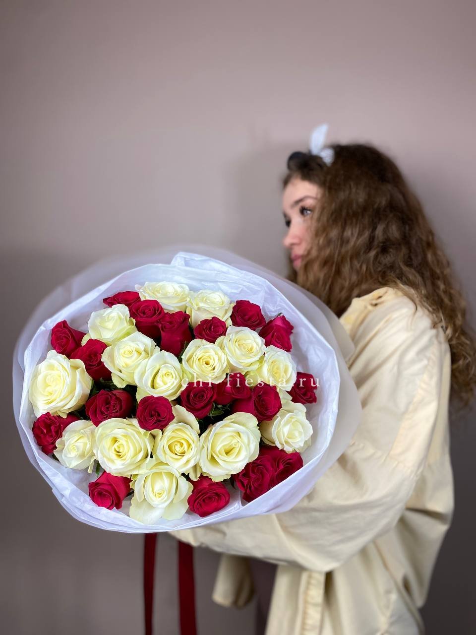 Для заказа товара "Букет из красных белых 35 роз" с доставкой в Йошкар-Оле нажмите в корзину