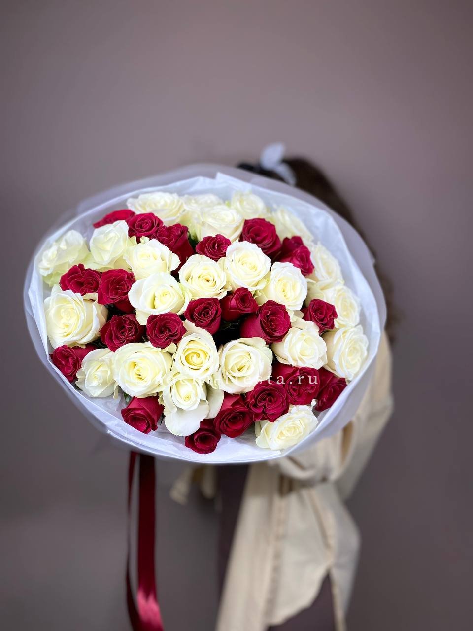 Для заказа товара "Букет из красных белых 45 роз" с доставкой в Йошкар-Оле нажмите в корзину