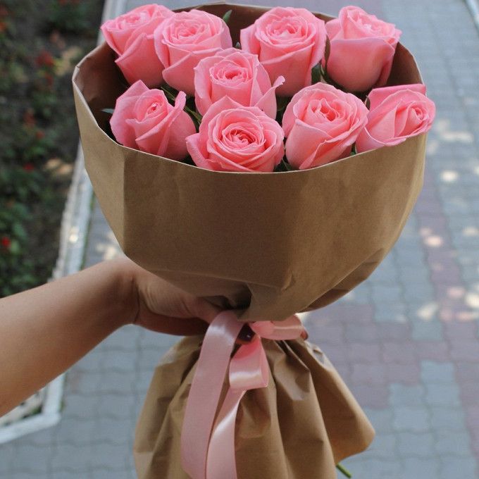 розовые розы - количество на выбор, авторская упаковка, лента.