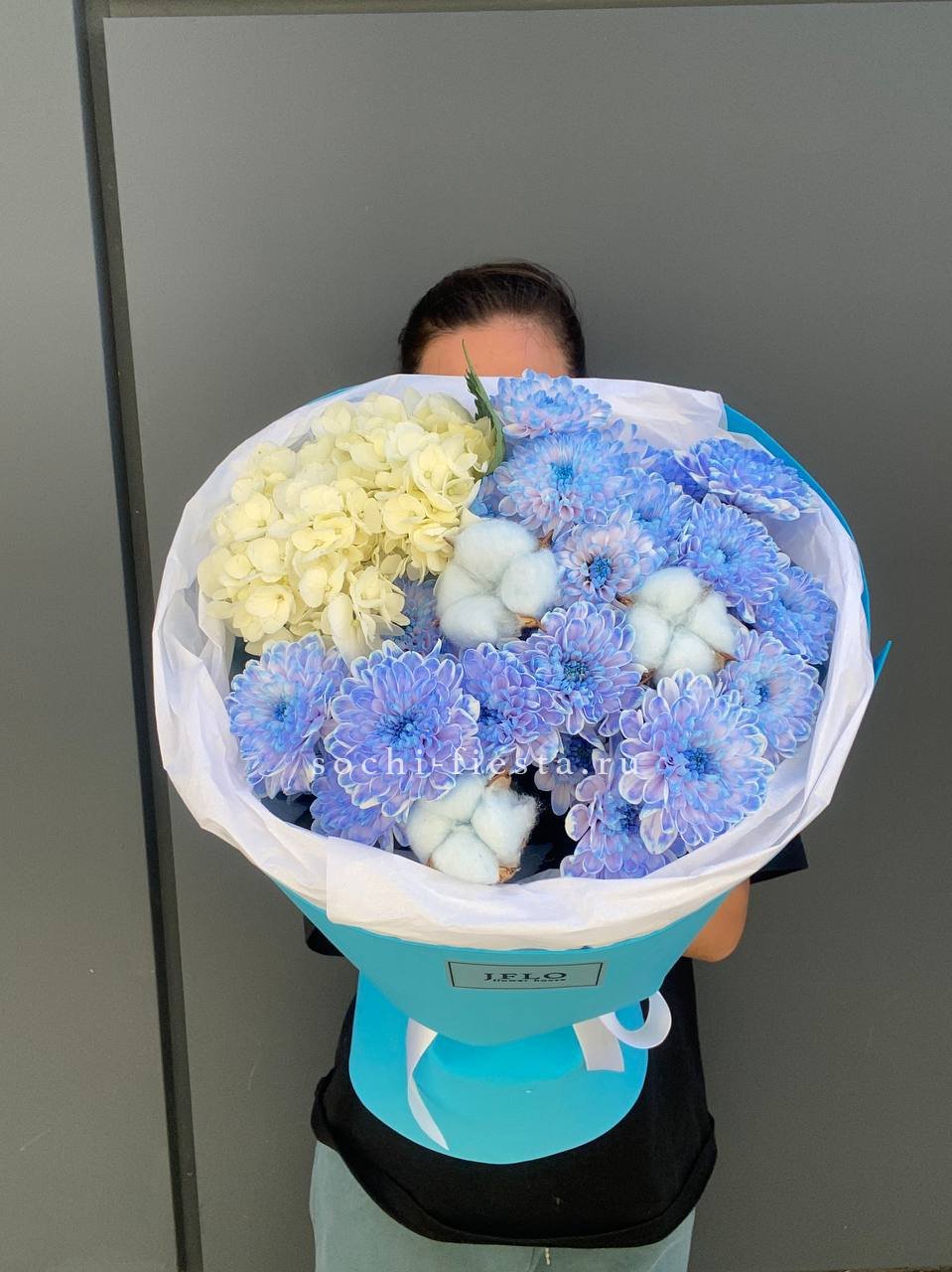 Lucrecia собрана из пионовидных и классических роз с добавлением пушистых кустовых хризантем. Букет легко впишется в современный интерьер и поддержит спокойную эстетику пространства.