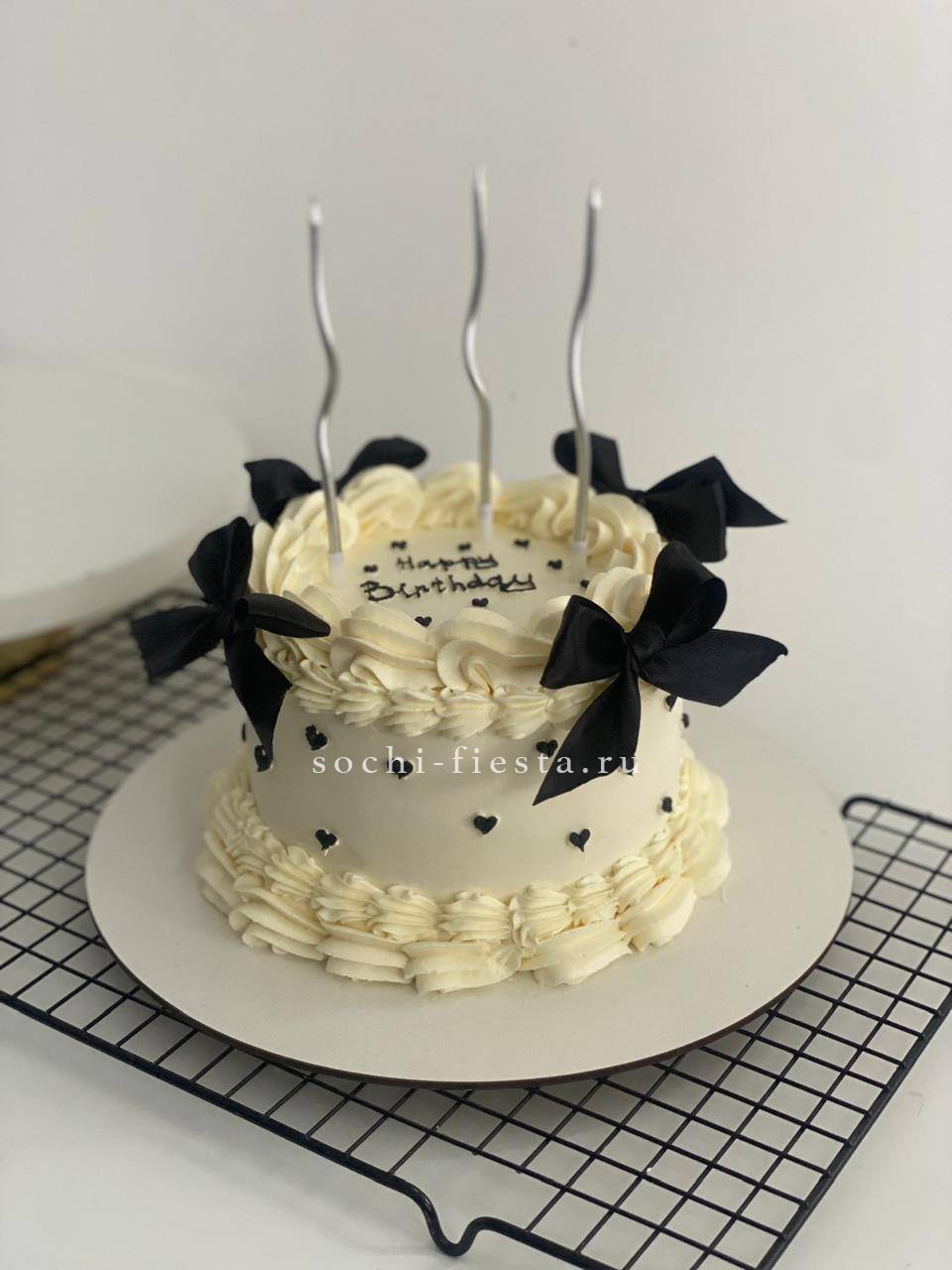 Кремовая фактура с мягкими волнами и надпись в центре создают романтичное настроение. Каждый элемент декора выполнен вручную с заботой о деталях.